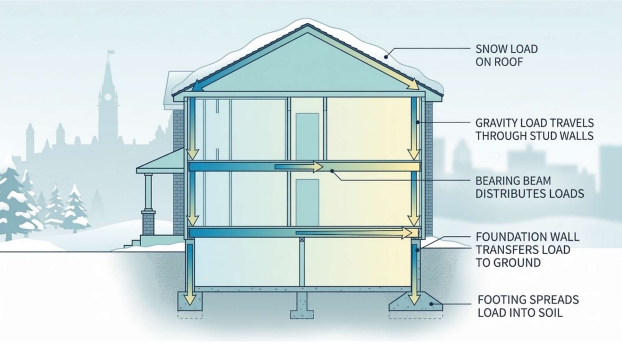 While we stay strictly within the limits of a visual audit, our academic training in load paths (how weight travels from the roof to the ground) helps us identify “red flags” that might otherwise be missed. In Ottawa, where heavy snow loads and expansive clay soils are common, understanding these stresses is vital for a comprehensive visual assessment.